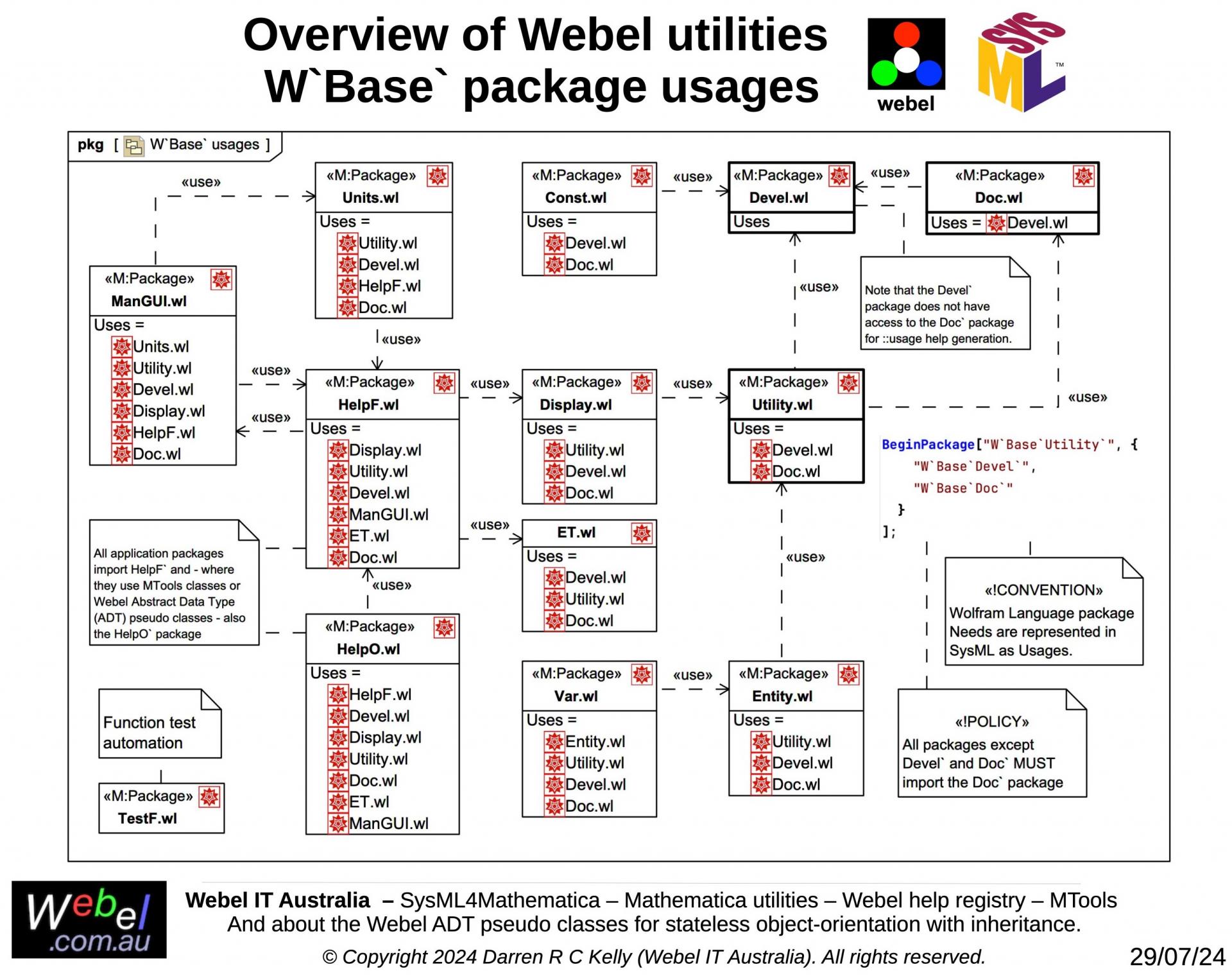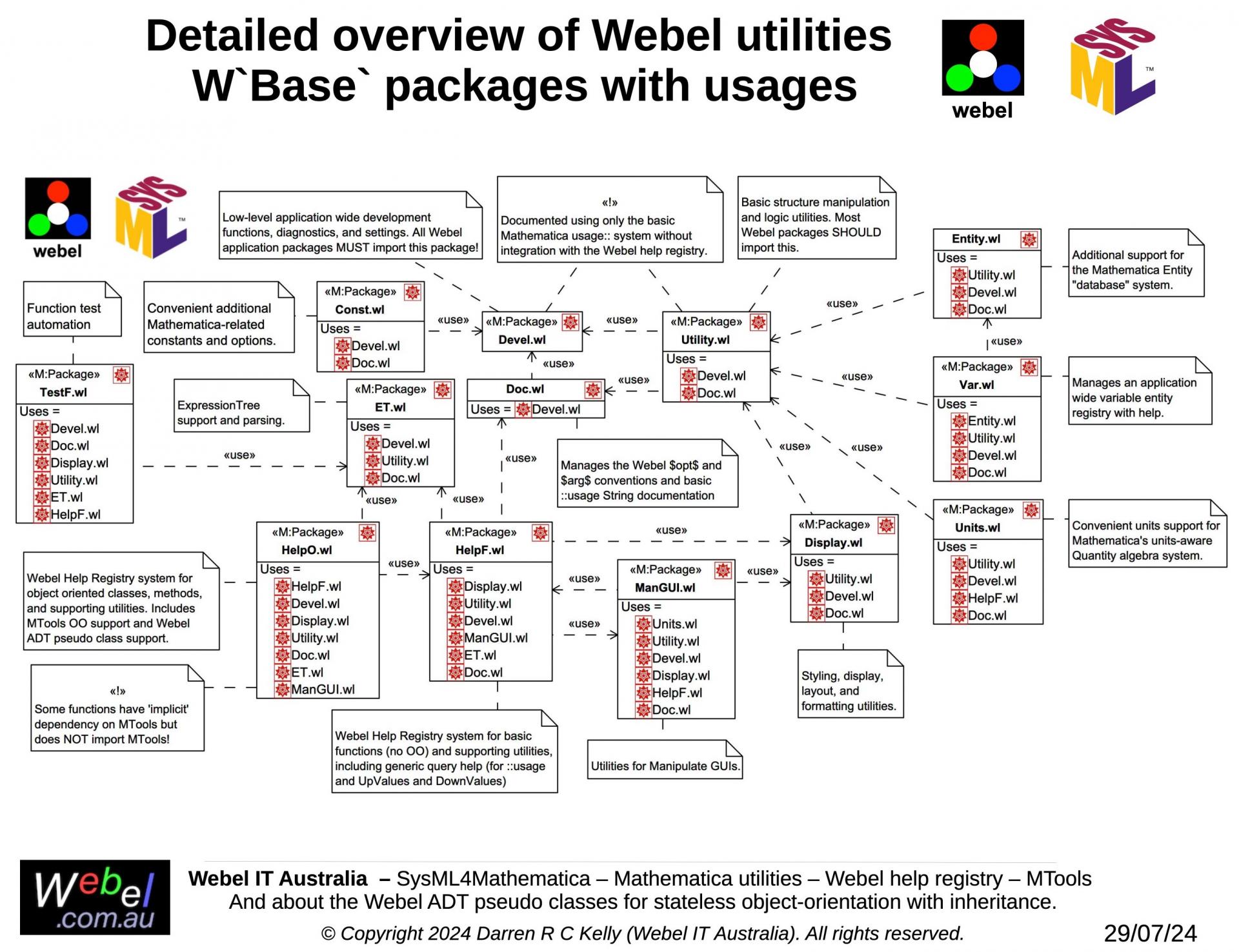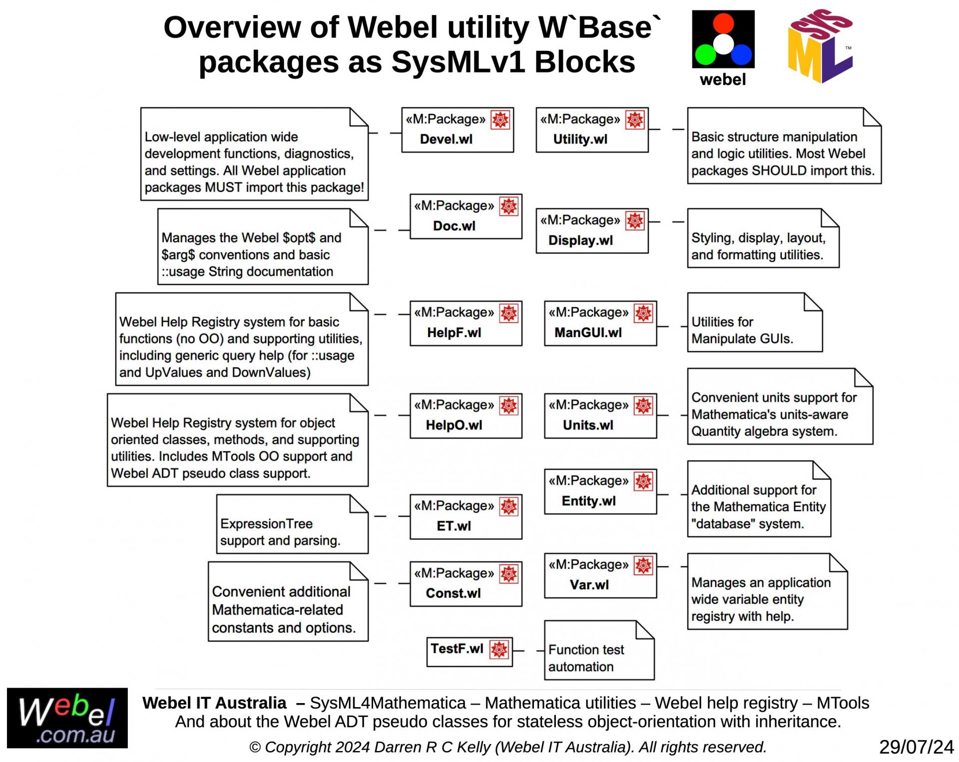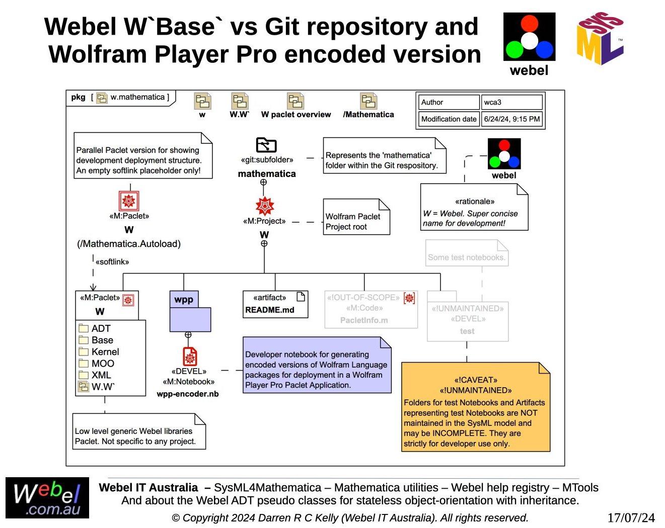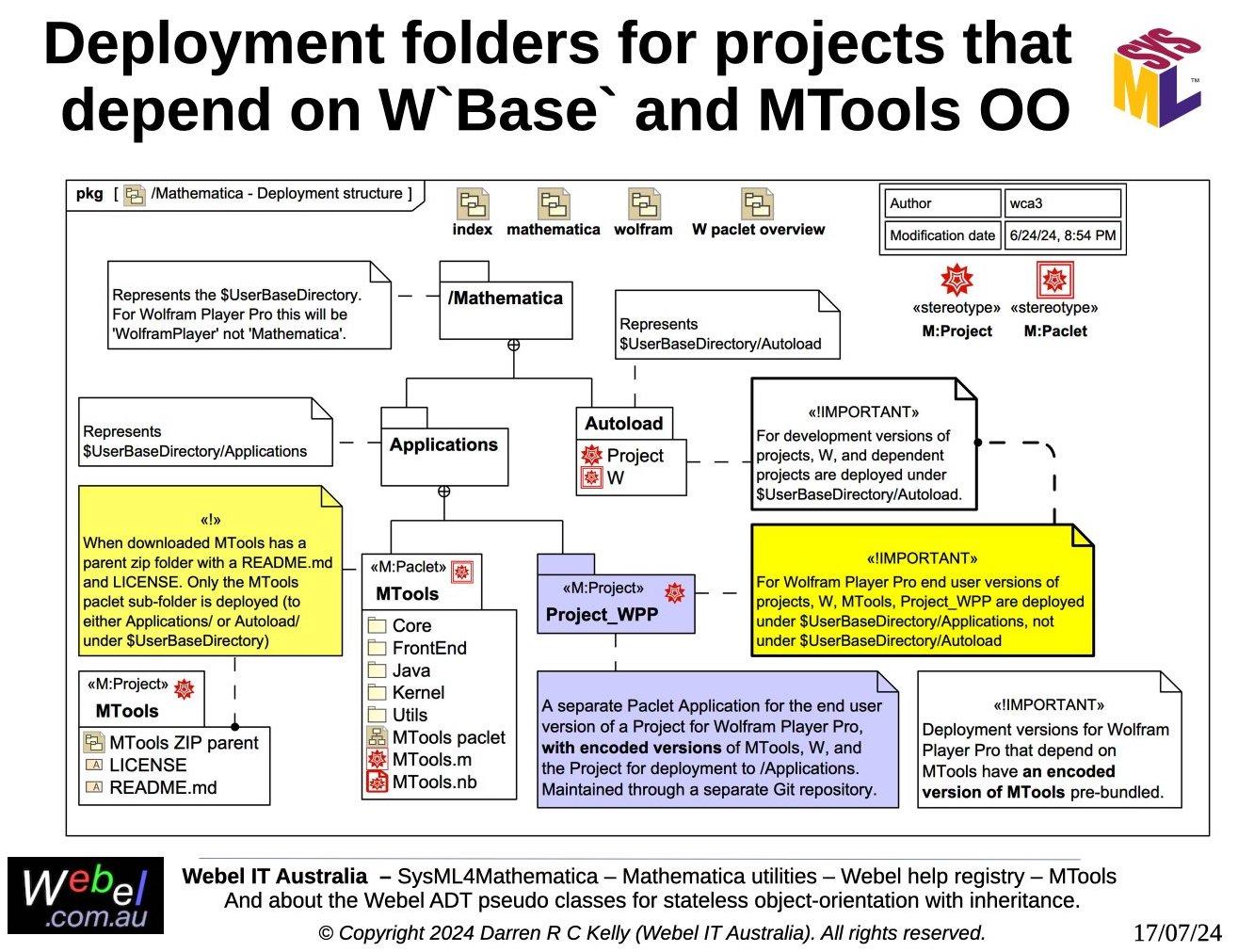 As part of a long term project developed, initially during work for a client, Webel IT Australia in partnership with GreenSoft Pty Ltd is developing a very complex Mathematica application with substantial SysML modelling support.