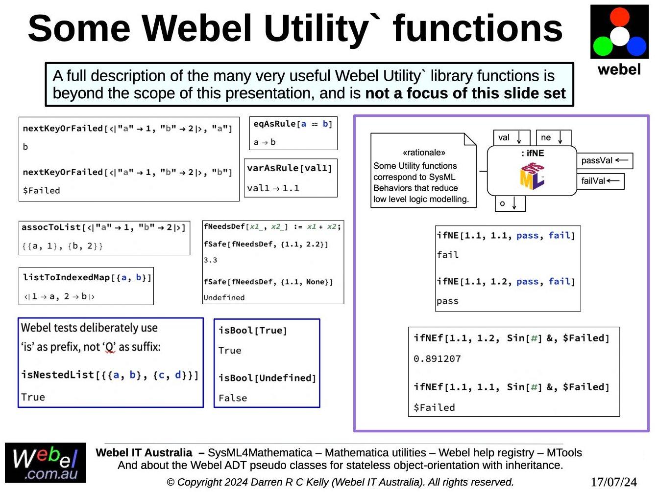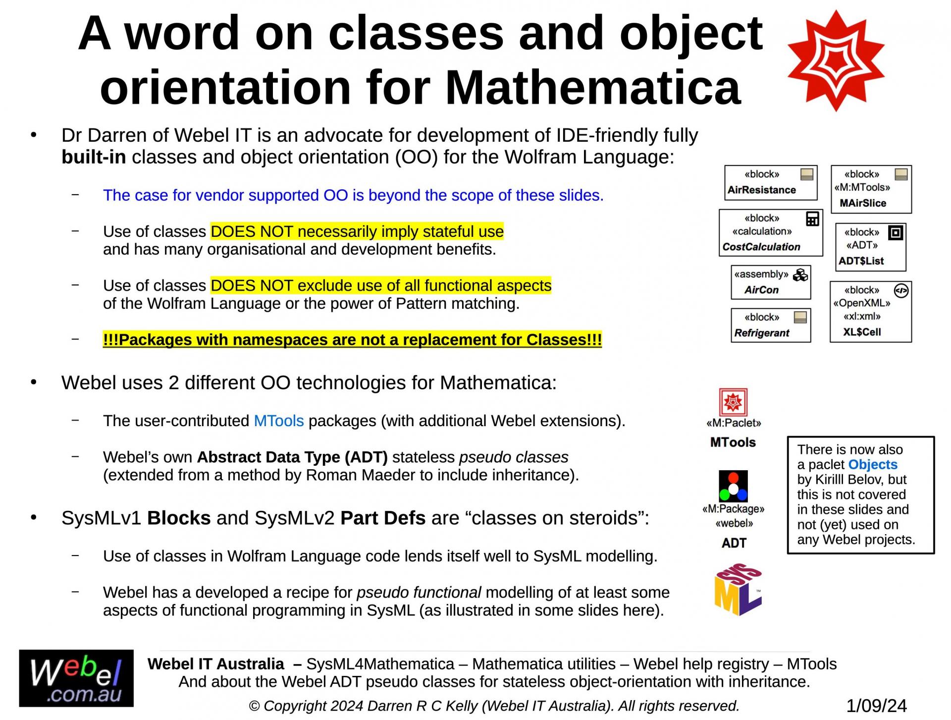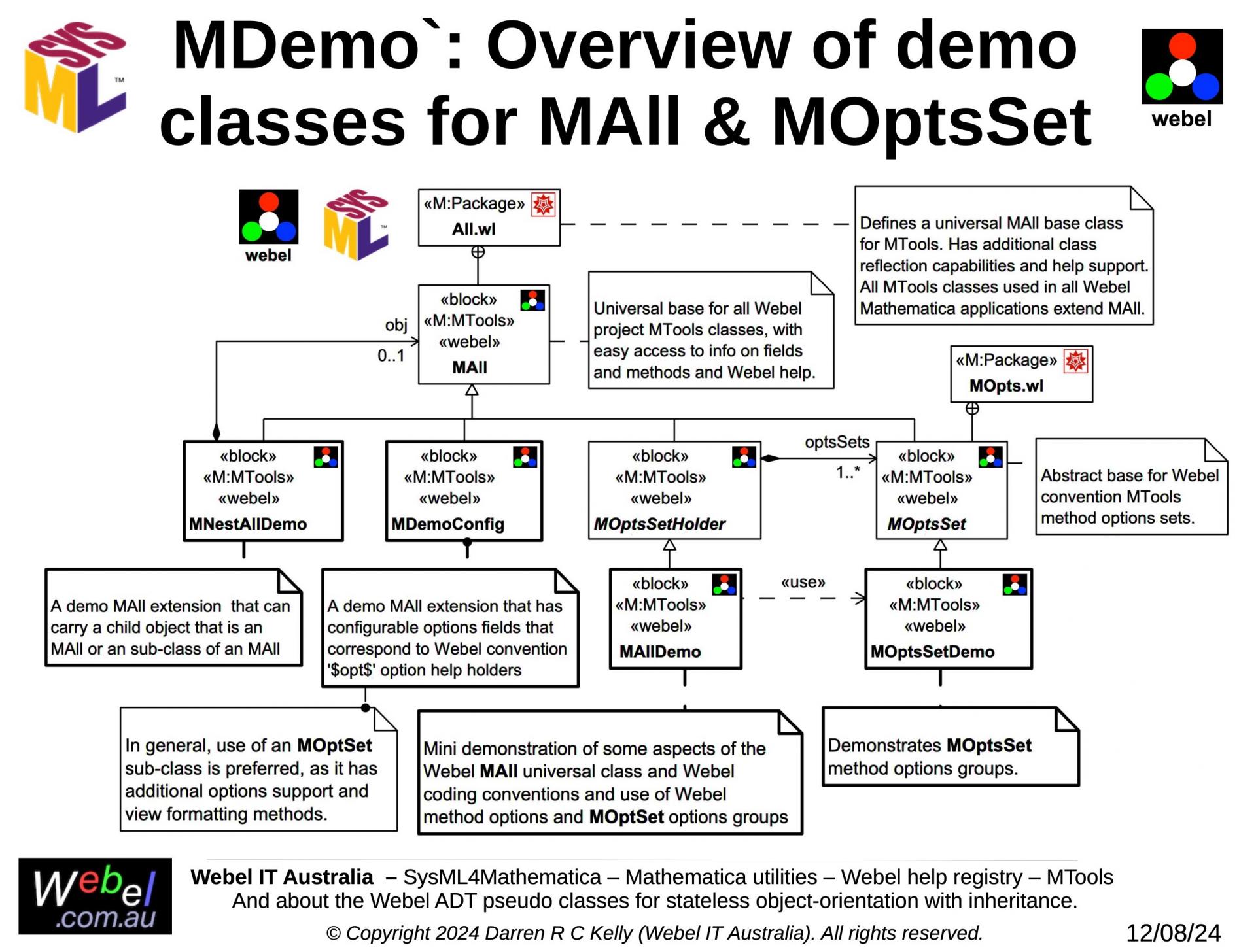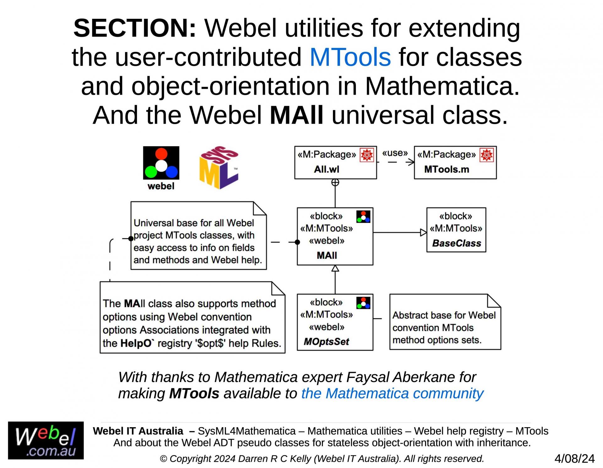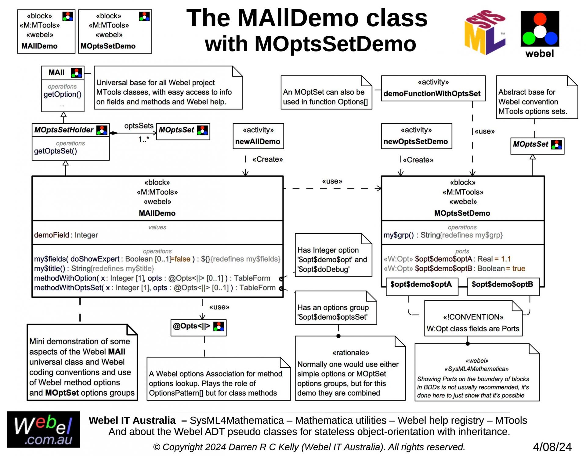 As part of a long term project developed, initially during work for a client, Webel IT Australia in partnership with GreenSoft Pty Ltd is developing a very complex Mathematica application with substantial SysML modelling support.