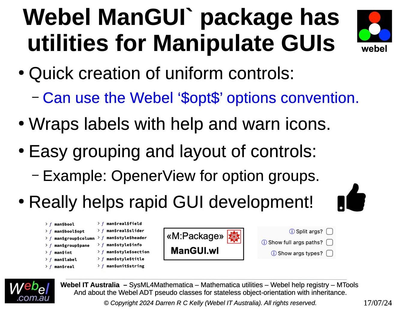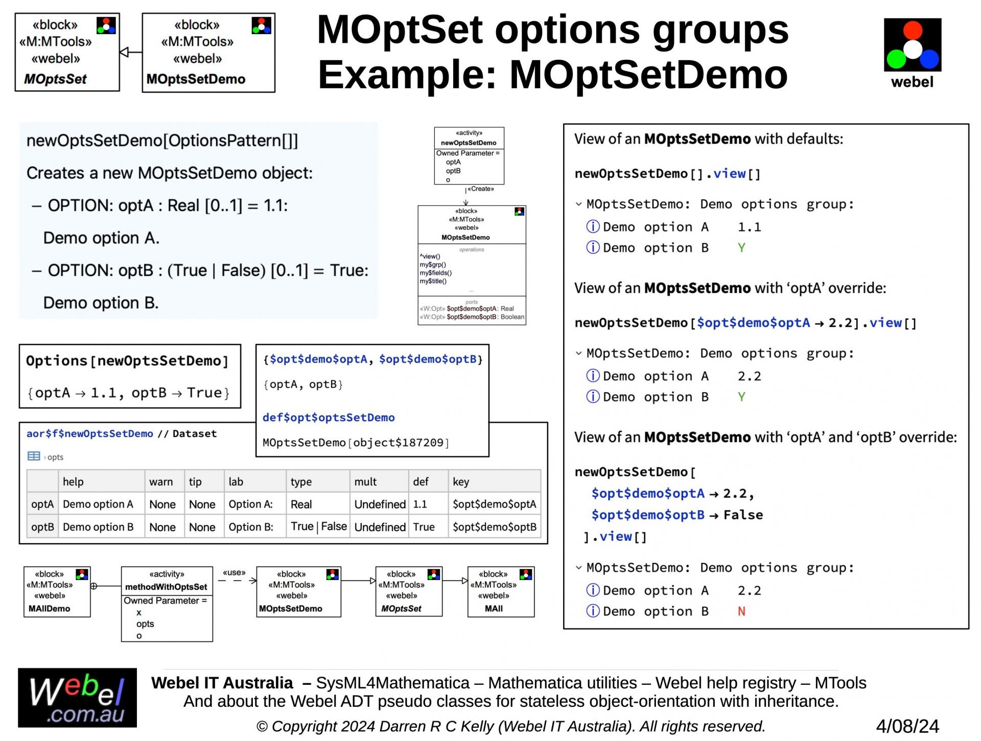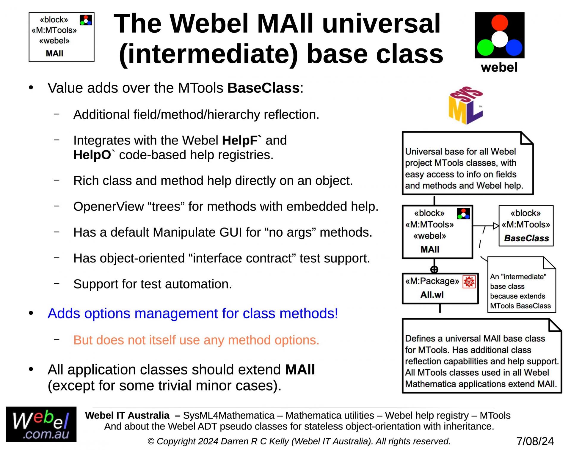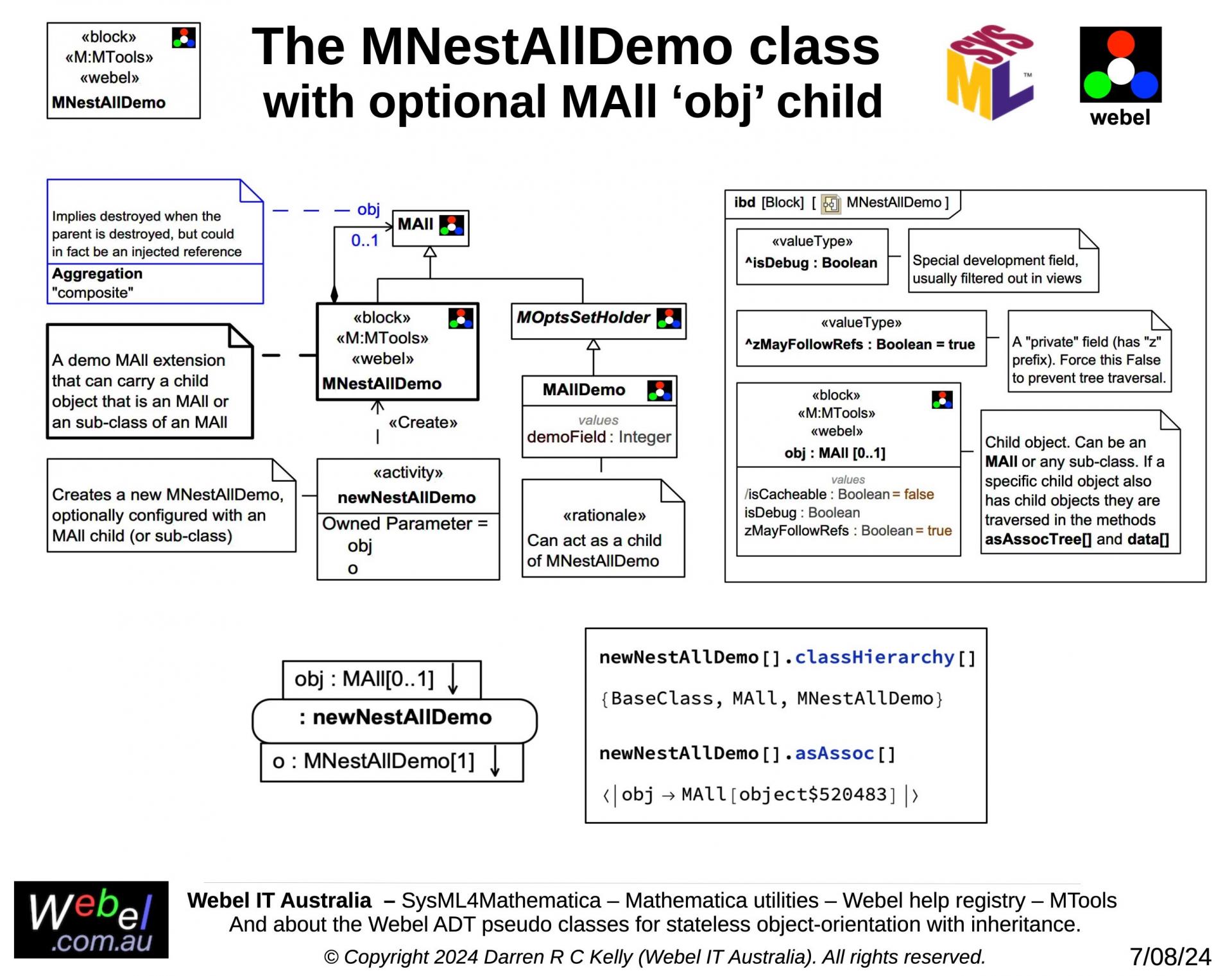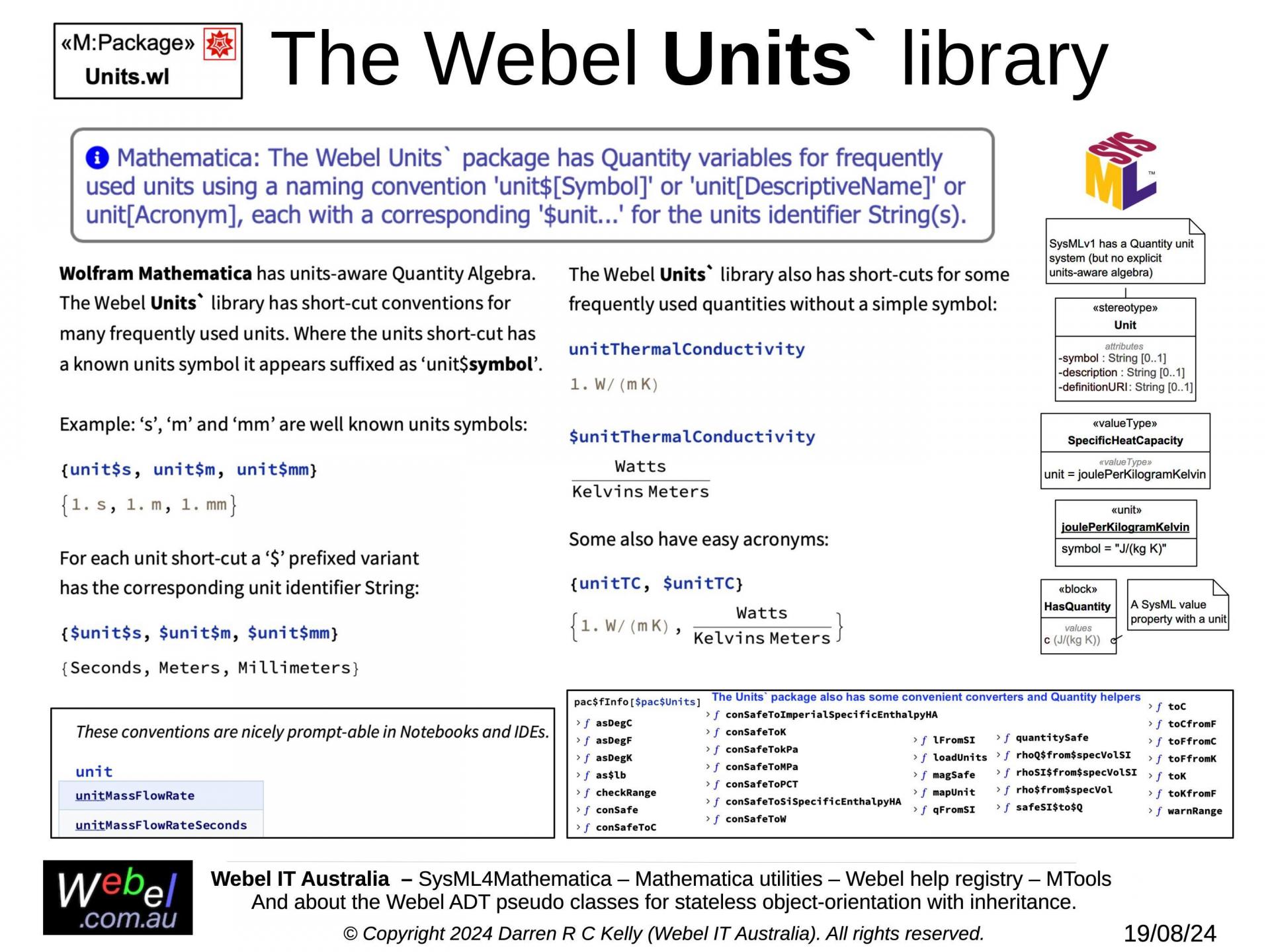 As part of a long term project developed, initially during work for a client, Webel IT Australia in partnership with GreenSoft Pty Ltd is developing a very complex Mathematica application with substantial SysML modelling support.
