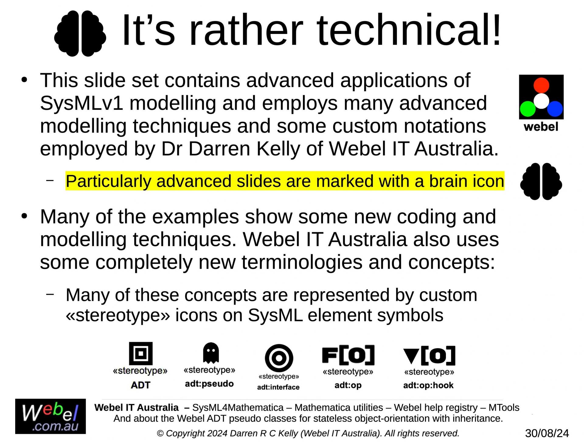 The Webel Best Practice items for SysML (and for supporting UML) - tuned for the MagicDraw/Cameo tools - represent the world's most comprehensive guide to robust, fluent, enjoyable, consistent modelling for Model-Based Systems Engineering (MBSE), developed over two decades, and proven to work on extremely demanding real-world projects!
